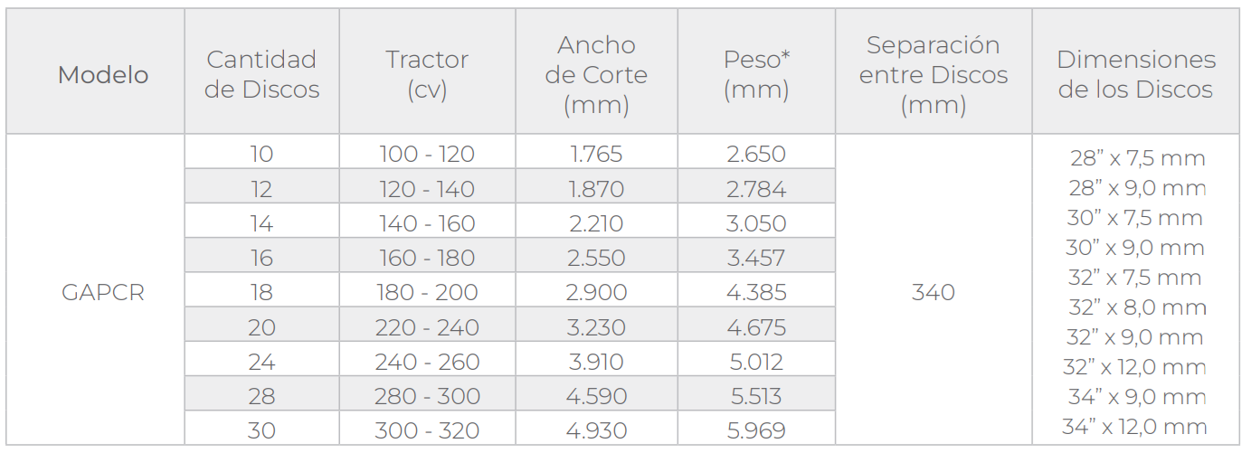La GAPCR ejecuta los trabajos de aración profunda con elevado rendimiento operacional. La estructura resistente y bien dimensionada posee un eficiente sistema de rodaje, que agiliza las maniobras y permite el uso de la rastra en cualquier tipo de suelo. Esta rastra tiene aplicación comprobada en la destrucción de restos de culturas, en la reforma de pasturas y en el preparo del suelo para plantío de cereales en general.